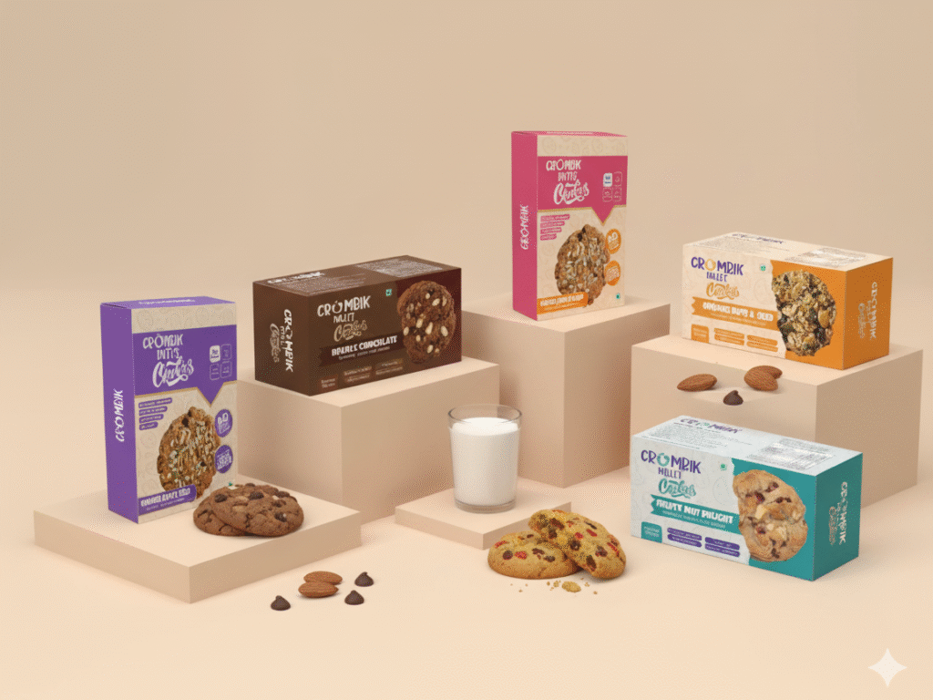 At Crumbik, we believe indulgence should never come at the cost of health. That’s why we’ve reimagined cookies – blending the comfort of traditional baking with the goodness of superfoods, millets, nuts, and fruits.
